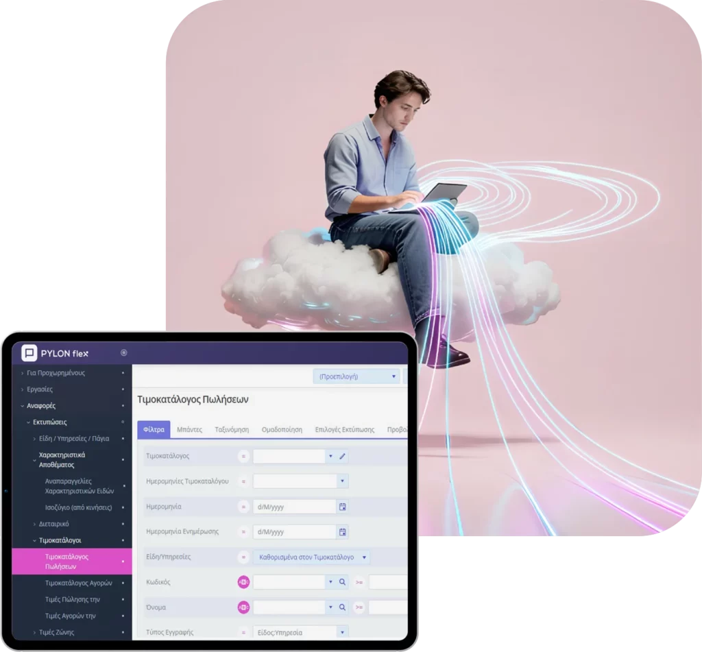 Το PYLON flex είναι η πρώτη πλήρως web, συνδρομητική εφαρμογή Οικονομικής και Εμπορικής Διαχείρισης στην ελληνική αγορά, σχεδιασμένη για επιχειρήσεις που απαιτούν ευελιξία, ταχύτητα και απλοποιημένη διαχείριση.